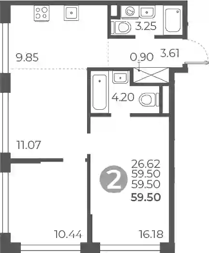 59.5 м2