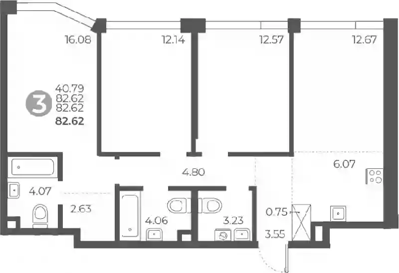 38 207 906 ₽3-к.квартира, 82.07 м², 8 эт.