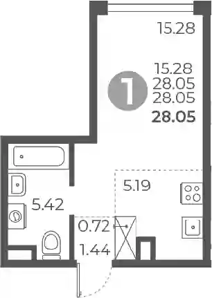 17 620 424 ₽Студия, 28.08 м², 3 эт.