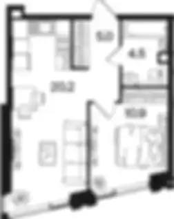20 972 319 ₽1-к.квартира, 42.59 м², 2 эт.