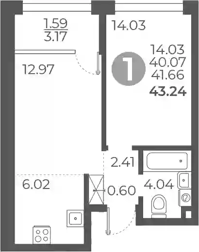 24 402 441 ₽2-к.квартира, 43.29 м², 13 эт.
