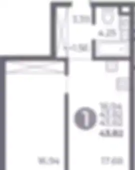 24 055 699 ₽1-к.квартира, 43.82 м², 12 эт.