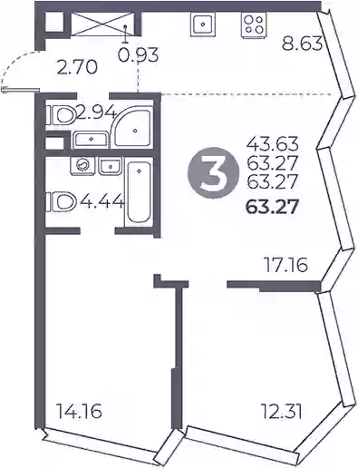 33 325 943 ₽3-к.квартира, 65.43 м², 12 эт.