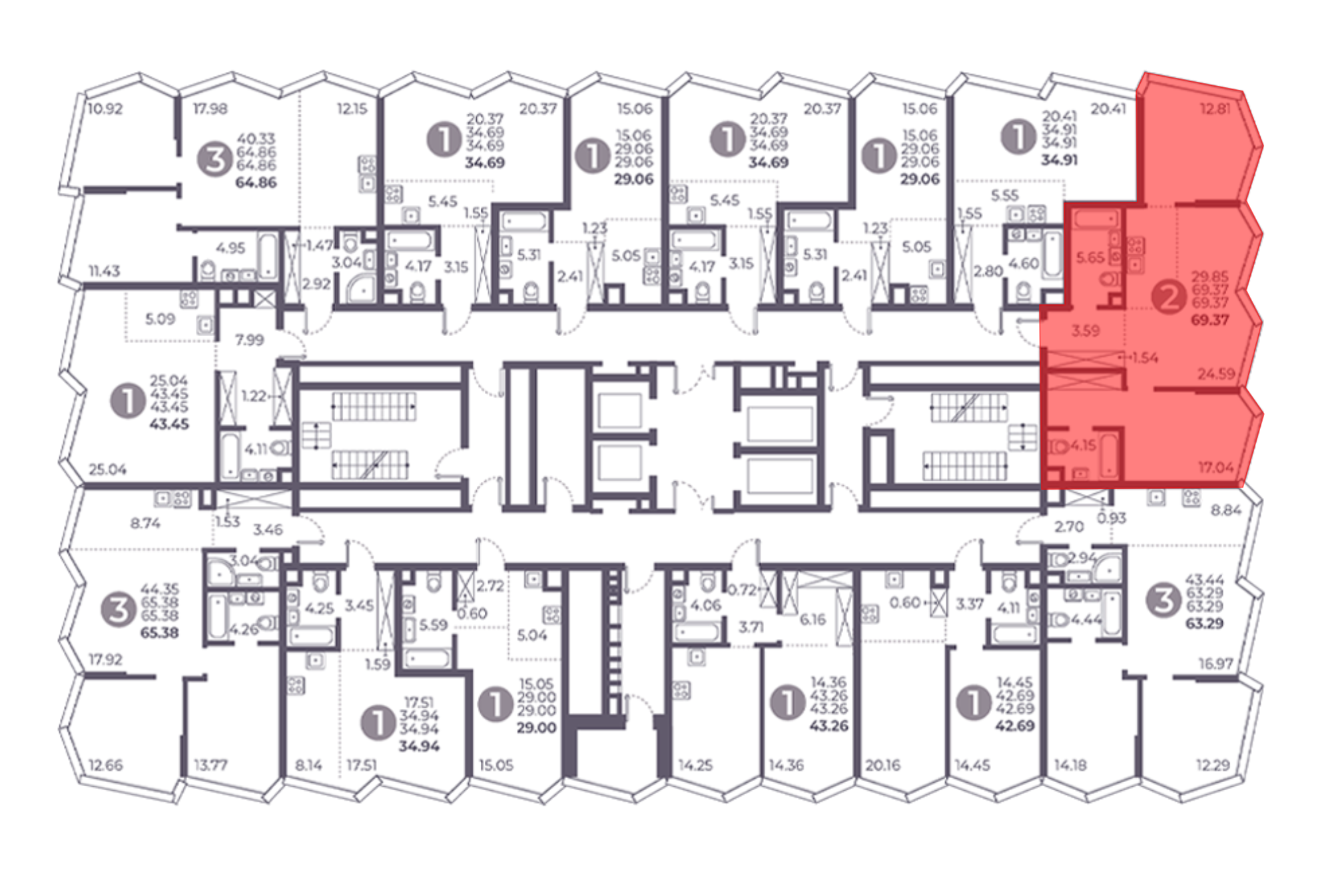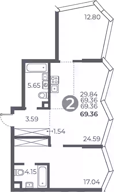 24 691 694 ₽2-к.квартира, 43.5 м², 19 эт.