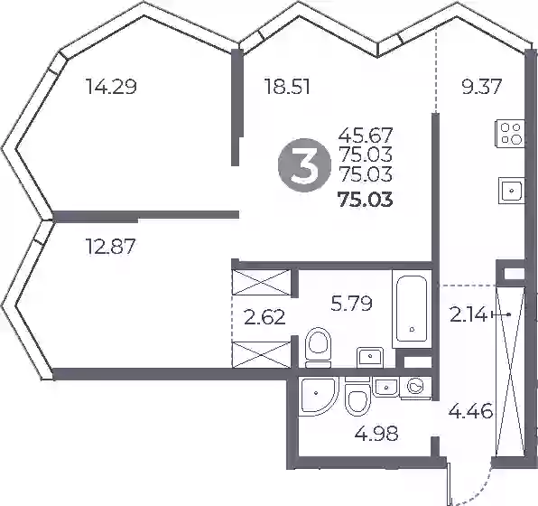 39 658 870 ₽3-к.квартира, 79.8 м², 31 эт.