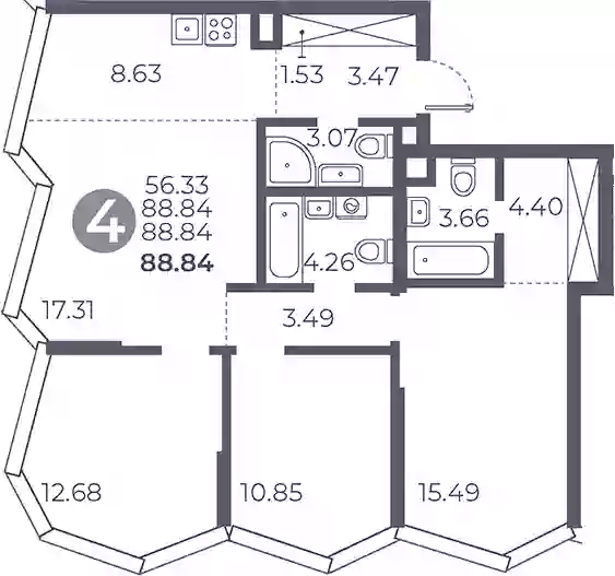 88.84 м2