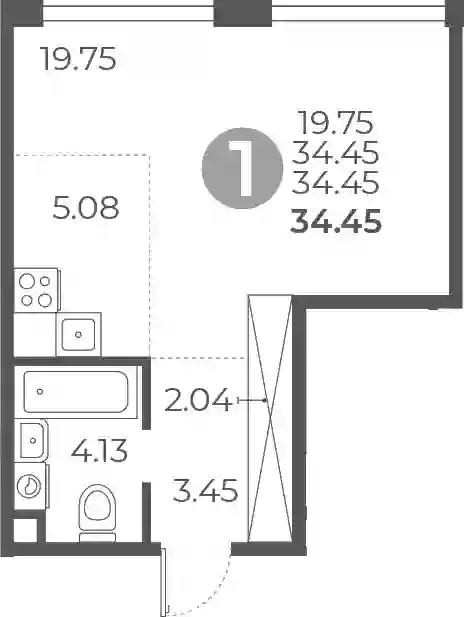 34.45 м2