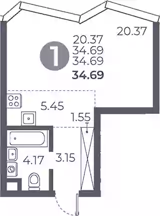 20 477 741 ₽Студия, 33.45 м², 3 эт.