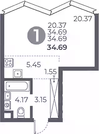 34.69 м2