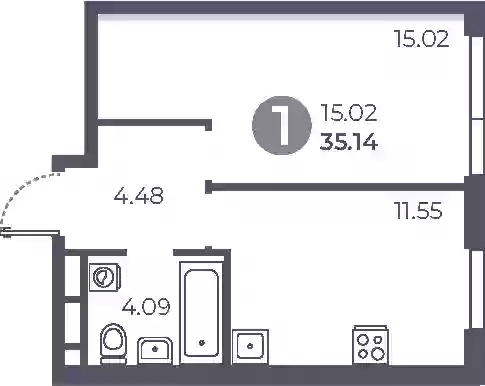 18 617 235 ₽1-к.квартира, 34.6 м², 33 эт.