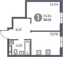 1-к.квартира, 36.12 м², 3 эт. в ЖК MYPRIORITY Нижегородская Корпус 1