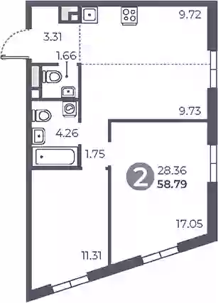 24 325 958 ₽2-к.квартира, 58.8 м², 26 эт.