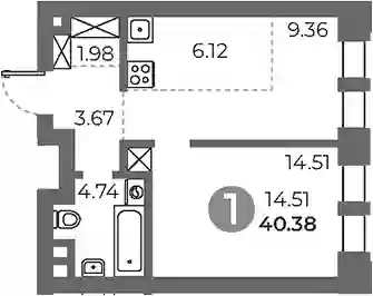 28 142 397 ₽1-к.квартира, 38.2 м², 10 эт.