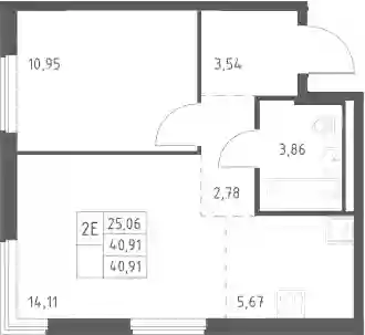 11 262 556 ₽2-к.квартира, 40.91 м², 6 эт.