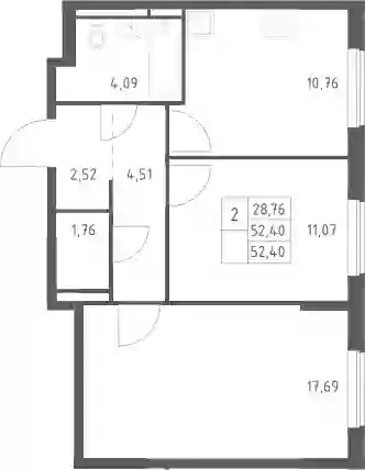 13 092 852 ₽2-к.квартира, 51.2 м², 3 эт.