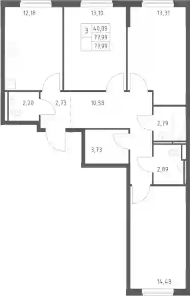 18 859 026 ₽3-к.квартира, 77.9 м², 13 эт.