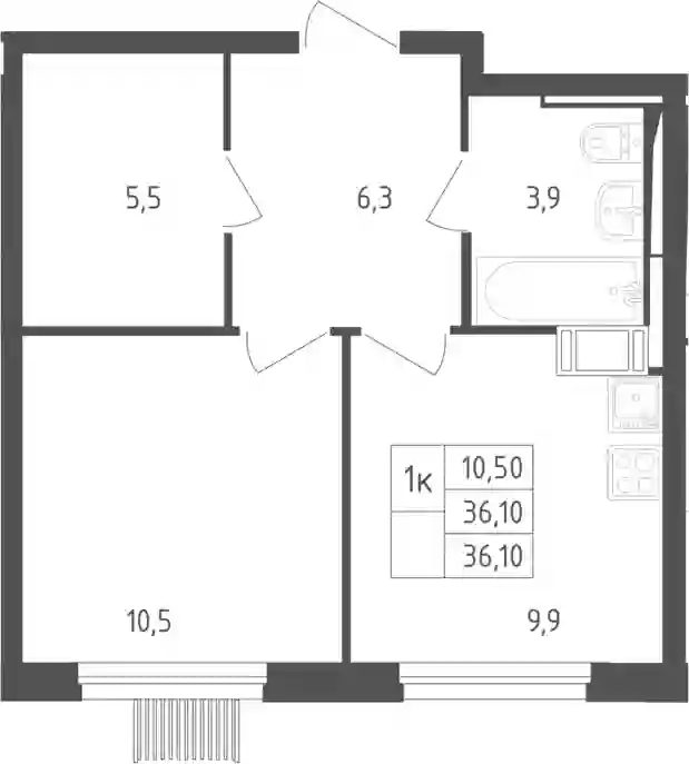 11 432 160 ₽1-к.квартира, 36.1 м², 5 эт.