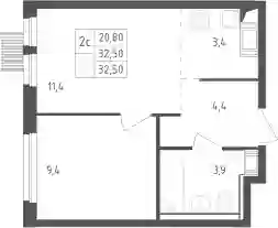 9 230 251 ₽2-к.квартира, 34.2 м², 5 эт.