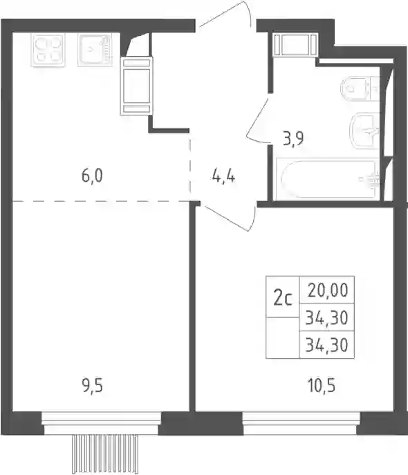 10 544 046 ₽2-к.квартира, 34.4 м², 10 эт.