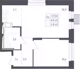 9 357 805 ₽2-к.квартира, 40.91 м², 16 эт.
