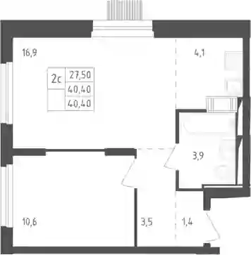 9 419 525 ₽2-к.квартира, 40.6 м², 3 эт.