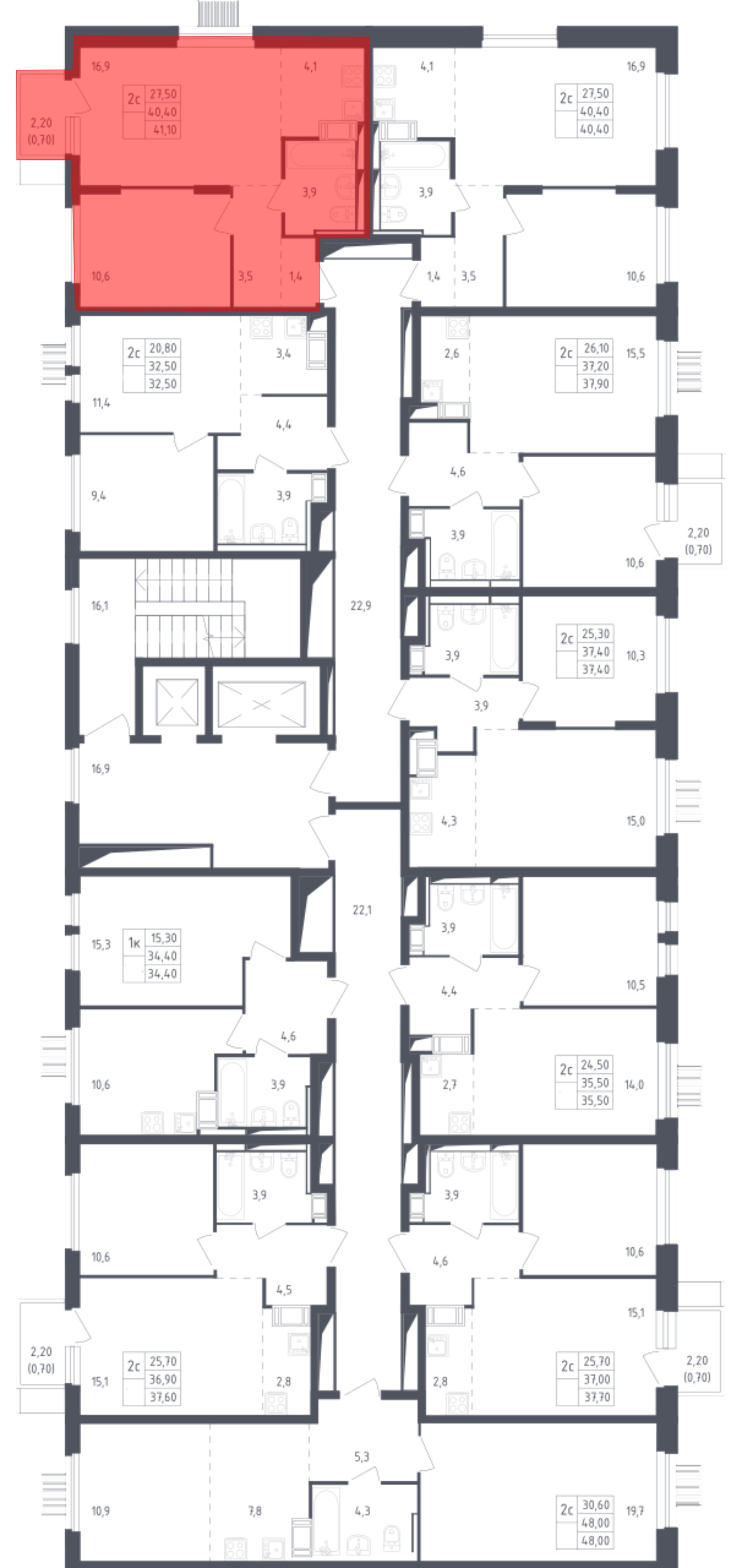 9 357 805 ₽2-к.квартира, 40.91 м², 16 эт.