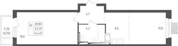 11 031 125 ₽2-к.квартира, 43.6 м², 3 эт.