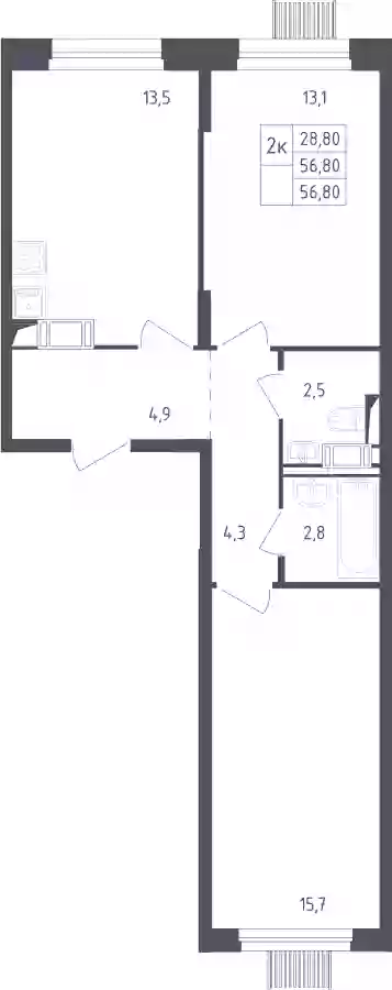 17 671 429 ₽2-к.квартира, 56.8 м², 12 эт.