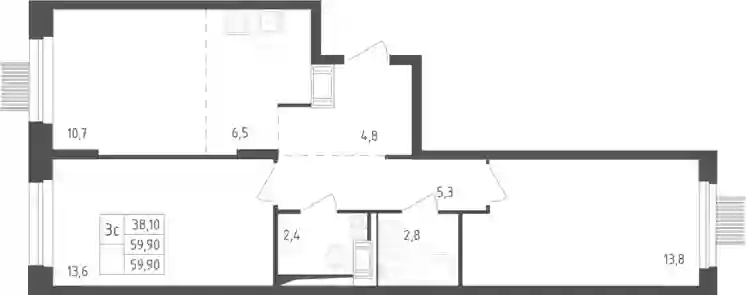 18 178 348 ₽3-к.квартира, 59.9 м², 8 эт.