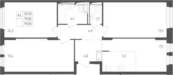 23 361 833 ₽4-к.квартира, 80.2 м², 17 эт.