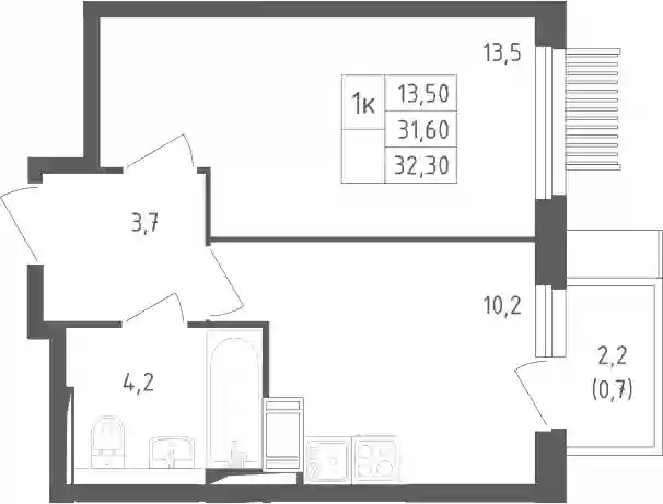 10 264 086 ₽2-к.квартира, 32.6 м², 7 эт.