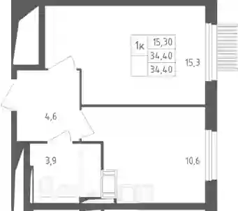 1-к.квартира, 34.4 м², 3 эт. в ЖК Мытищи Парк Корпус 4