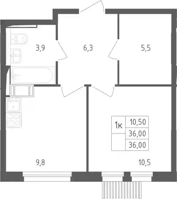 12 279 625 ₽1-к.квартира, 36 м², 3 эт.