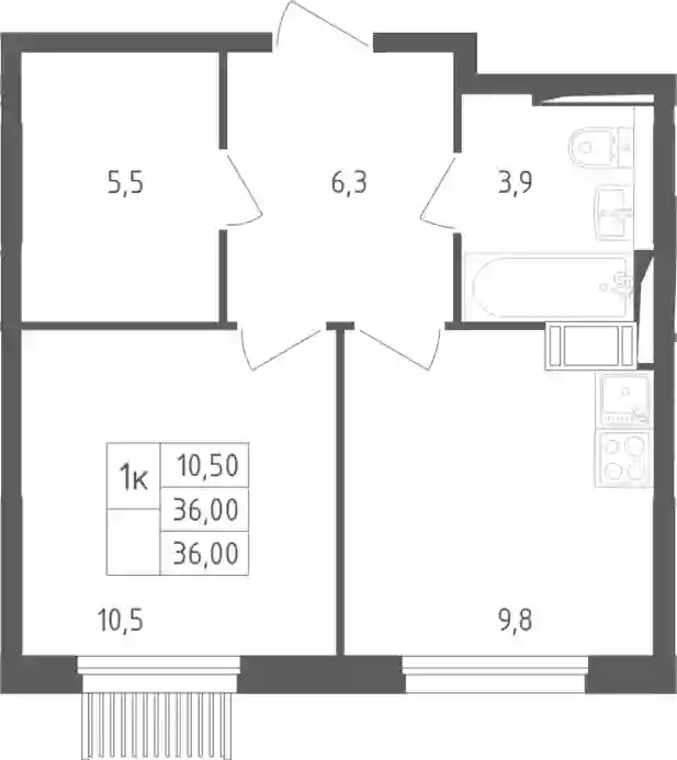 11 663 191 ₽1-к.квартира, 36 м², 7 эт.