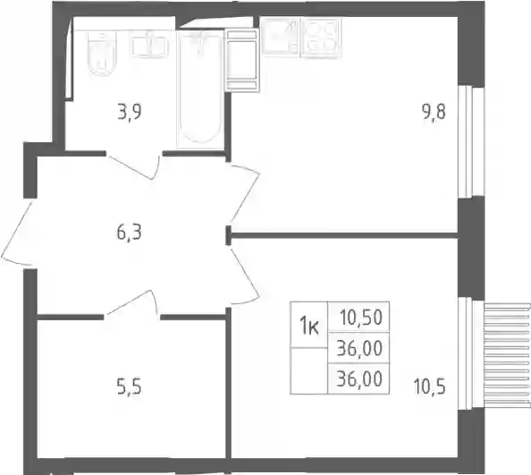 12 952 041 ₽2-к.квартира, 36.1 м², 5 эт.