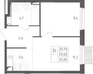 9 486 977 ₽2-к.квартира, 32.93 м², 2 эт.
