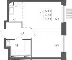 12 038 870 ₽2-к.квартира, 35.47 м², 3 эт.