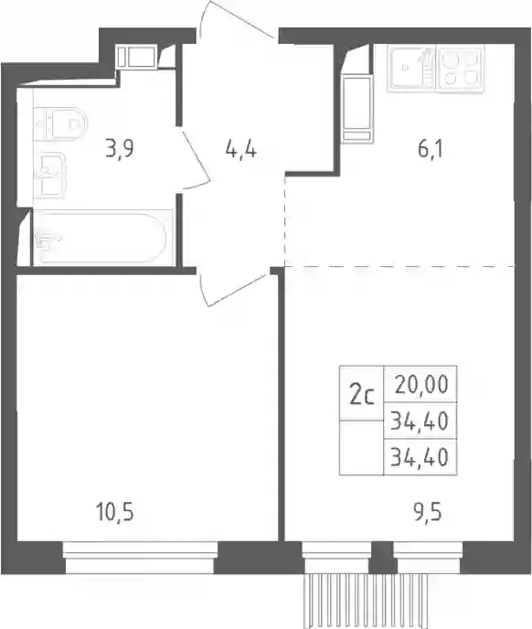 7 508 393 ₽2-к.квартира, 34.73 м², 14 эт.