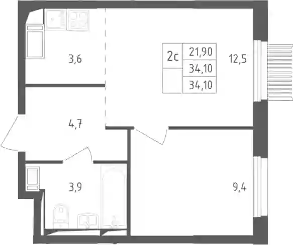 34.1 м2