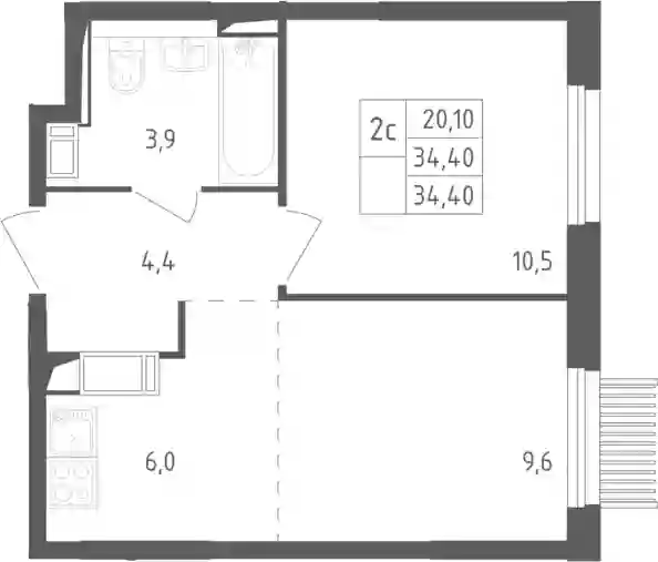 11 490 506 ₽2-к.квартира, 34.4 м², 7 эт.