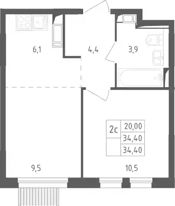 7 526 418 ₽2-к.квартира, 34.73 м², 12 эт.