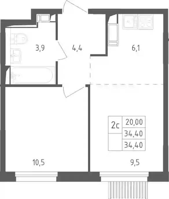 34.4 м2
