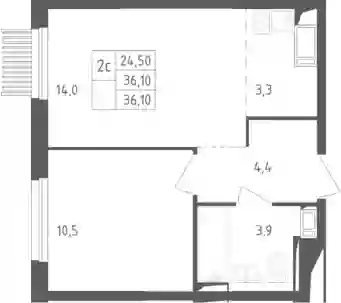 11 344 185 ₽2-к.квартира, 34.4 м², 5 эт.
