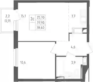 9 568 323 ₽2-к.квартира, 40.4 м², 15 эт.