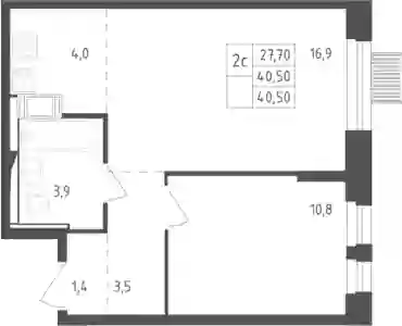 8 970 288 ₽2-к.квартира, 40.91 м², 16 эт.