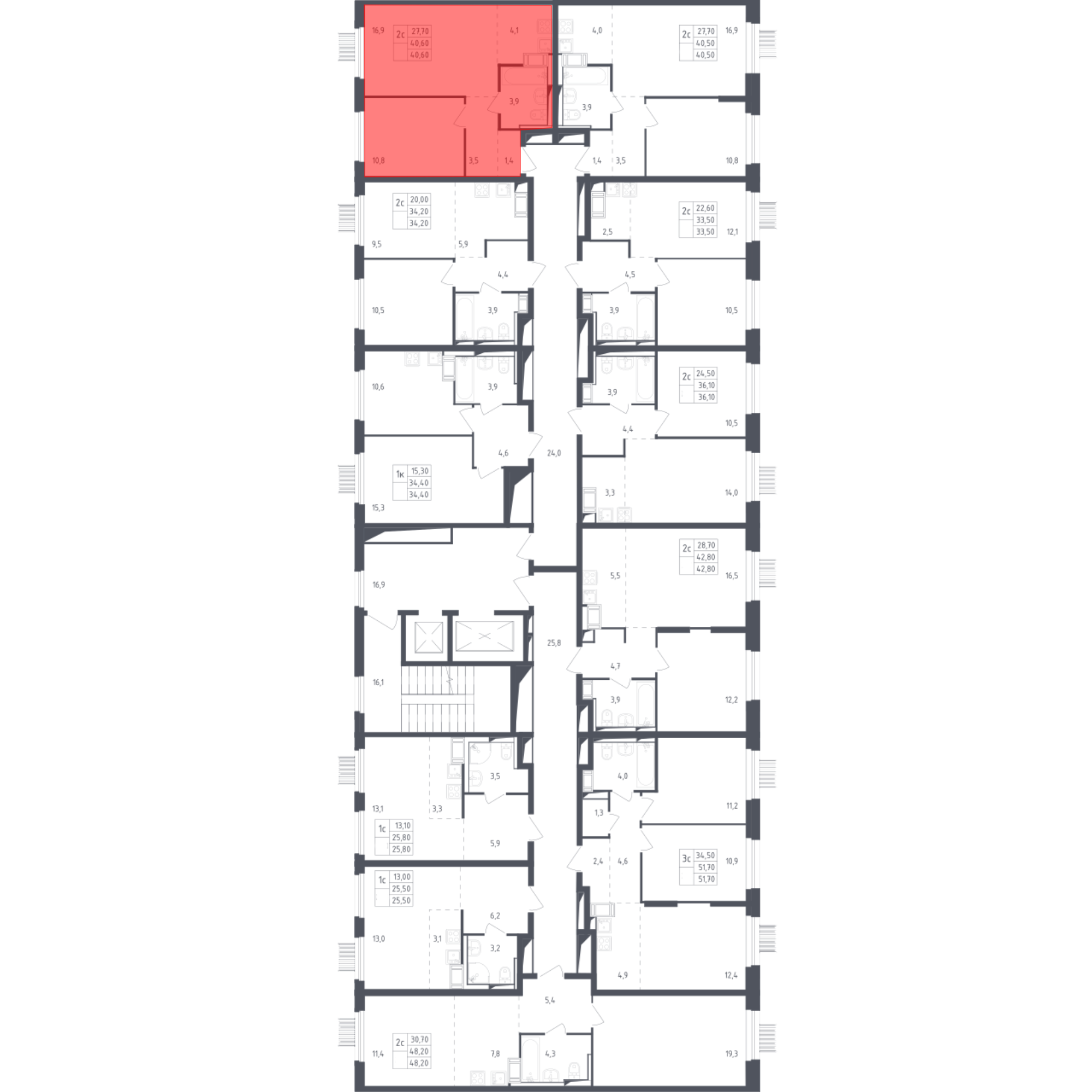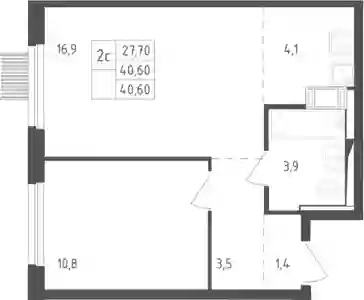 9 600 960 ₽2-к.квартира, 40.91 м², 10 эт.