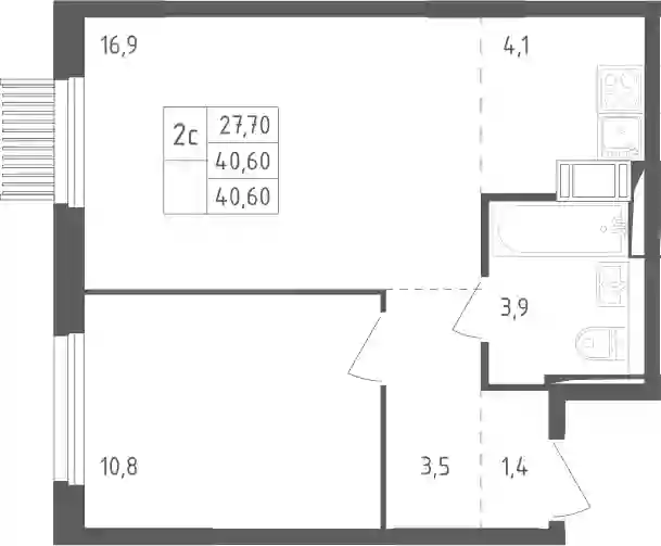 11 503 626 ₽2-к.квартира, 40.1 м², 3 эт.