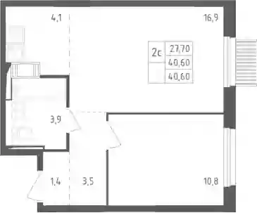 14 214 908 ₽2-к.квартира, 40.6 м², 3 эт.