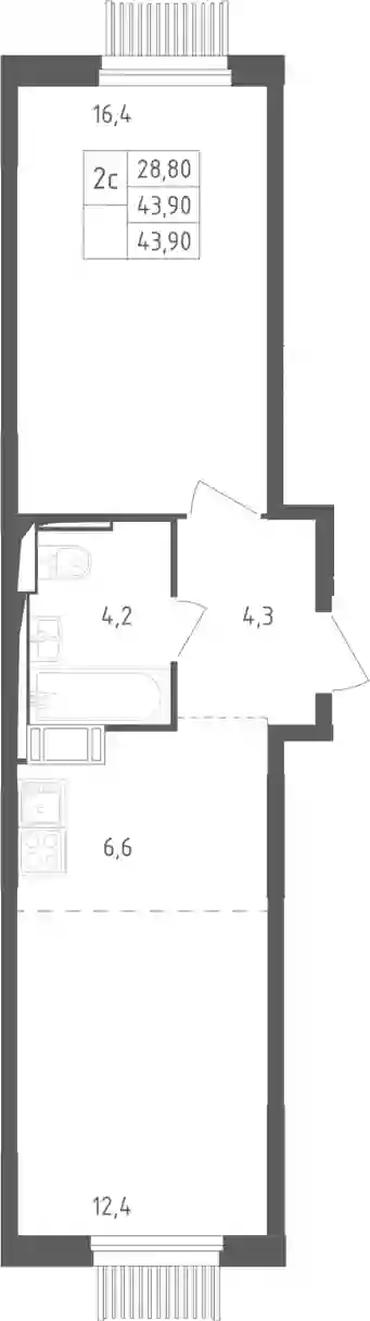 9 670 438 ₽2-к.квартира, 43.6 м², 7 эт.