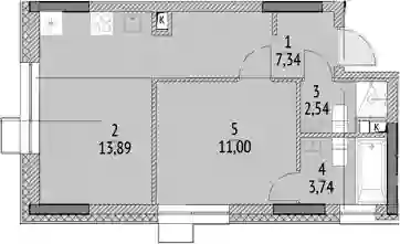 1-к.квартира, 38.51 м², 21 эт. в ЖК N'ICE LOFT Корпус 5